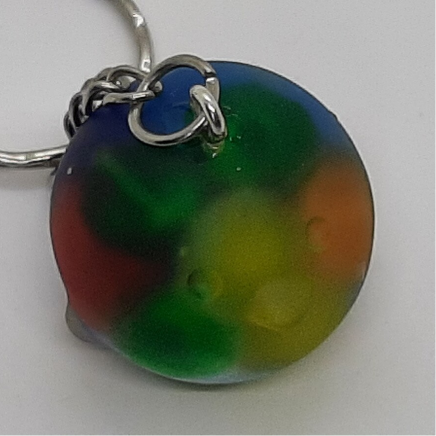 Schlüsselanhänger als kugelförmiger Vogel. Verschiedene Ausführungen. Durchmesser ca 2 cm.